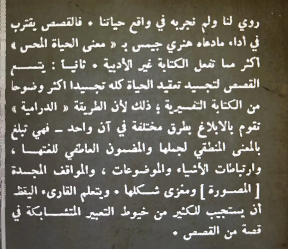 أن أحد المعايير الذاتية لجودة عمل من اعمال القصص قوته على حمل القارئ على أن يعيش في عالمه مدة من الوقت. وأن يعيش بعد ذلك مختلفًا عما كان عليه من قبل."